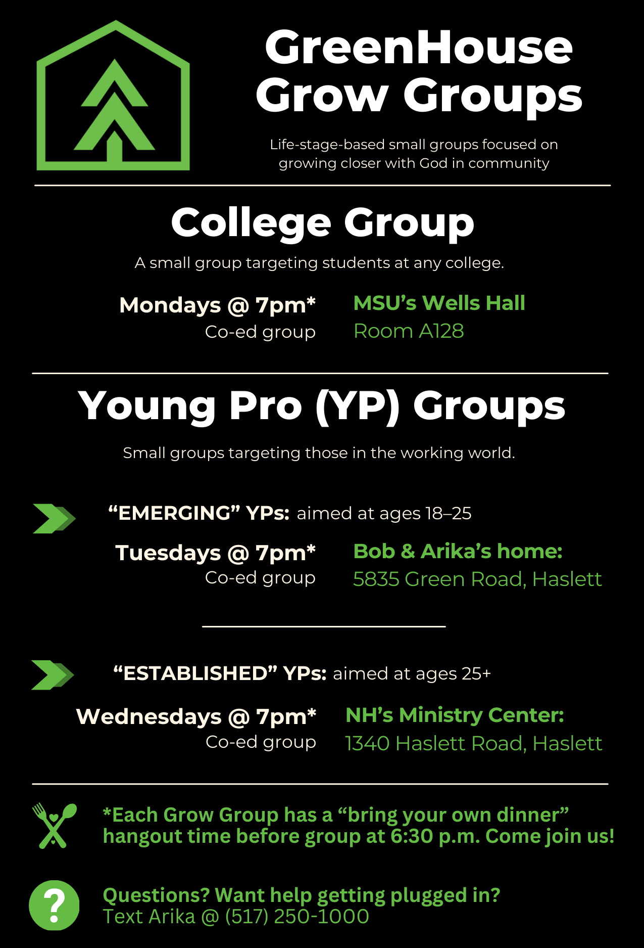 Tonight at 6:00 PM, GreenHouse is providing dinner — and YOU are invited!